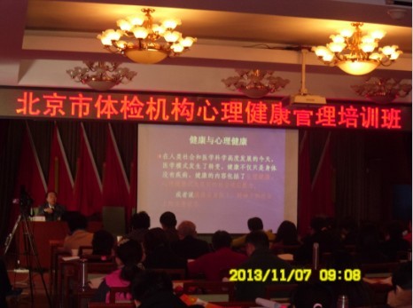 2013年11月7日,由北京健康管理协会主办,中盛凯新企业集团协办的北京市体检机构心理健康管理培训班在北京健康管理协会正式开班。这是北京健康管理协会落实《关于开展心理健康管理项目有关工作的通知》(京健管协[2013]6号),首次举办的体检机构心理健康管理培训班。