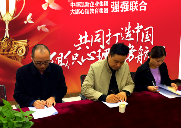 2014年2月24日,中盛凯新企业集团与大康心理教育集团正式建立联盟战略合作,当日中盛凯新总裁张妮、大康心理董事长寇觉中、副总董志举正式签订战略联盟合作书,此举开创了心理学界服务企业的强强联合新模式,届时2家企业将共同联合推出新的服务体系与产品——“OPS组织心理服务”,为更多的企事业单位组织提供心理全方位服务。