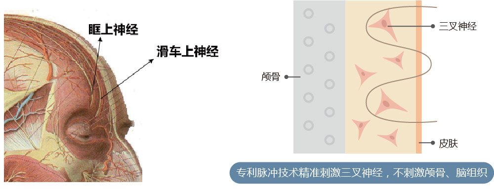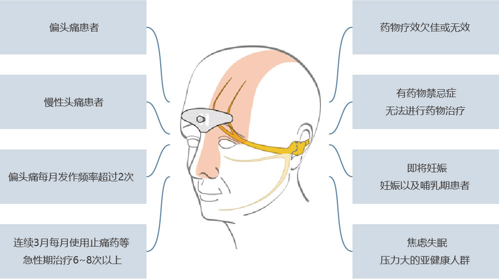 偏头痛是一种三叉神经血管疾病,可通过药物或神经刺激治疗。舒缓仪是一种神经电刺激疗法,通过刺激三叉神经两个重要分支,从而预防、治疗头痛。在脊髓背角内的胶质细胞有一种类似闸门的神经机制,大脑通过下行抑制系统或下行易化系统来关闭或开放闸门,对疼痛信号进行调控。神经刺激产生的冲动可使胶质细胞兴奋,增强了胶质细胞对传入纤维末梢的抑制作用而关闭闸门,不再传递其他疼痛冲动的刺激信号,从而缓解疼痛。