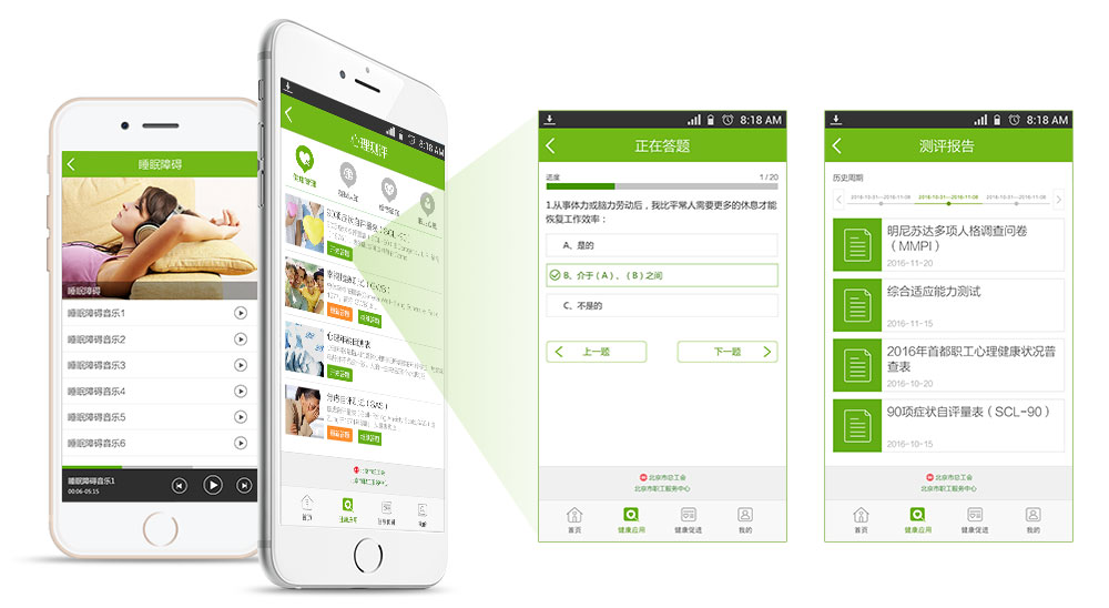 微信移动端心理服务系统主要是针对终端用户在进行心身健康管理过程中,不受时间空间的影响,随时随地可进行操控的服务系统,通过微信端即可实现3D健康的各项应用。