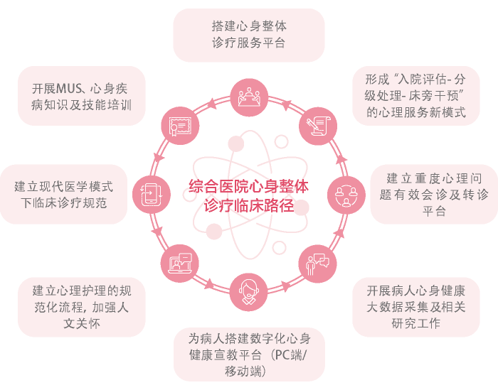 现代医学模式与WHO健康新概念早已提出,综合医院需要对患者进行生物、心理、社会三位一体综合分析评估、对疾病实施心身整体诊疗服务。对于MUS不进行心身整体诊疗,就无法实现心身同诊同治,就无法达到满意的临床效果;对躯体疾病伴发心理问题,如不及时发现与处理,就会影响疾病康复,增加隐患与风险。发展心身整体诊疗技术、建立心身整体诊疗服务模式已是大势所趋、当务之急。